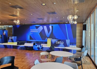 Moduuleista kasattavat sisänäytöt mahdollistavat kuvanpinnan koon ja muodon räätälöimisen käyttötarpeen mukaisesti. Sisänäyttöjemme pikselitiheys on peräti 1.9 mm.