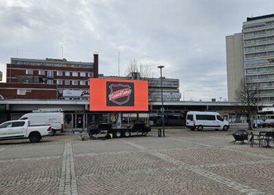 Vuokrattavien trailerinäyttöjemme koko vaihtelee 8-28 m2 välillä ja moduuleista pystymme kasaamaan juuri haluamasi kokoisen LED-näytön.